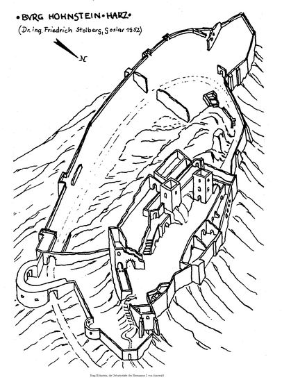 Zeichnung der Burgruine Hohnstein in Neustadt/südlicher Harz