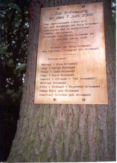 Erinnerungstafel an das 1. Treffen auf dem Burg-Hügel Burg Arnswald, 2000