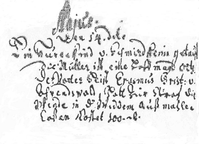 Die Taufurkunde des Cjristoph Ahrenswald am 14. Mai 1665 in Schippenbeil