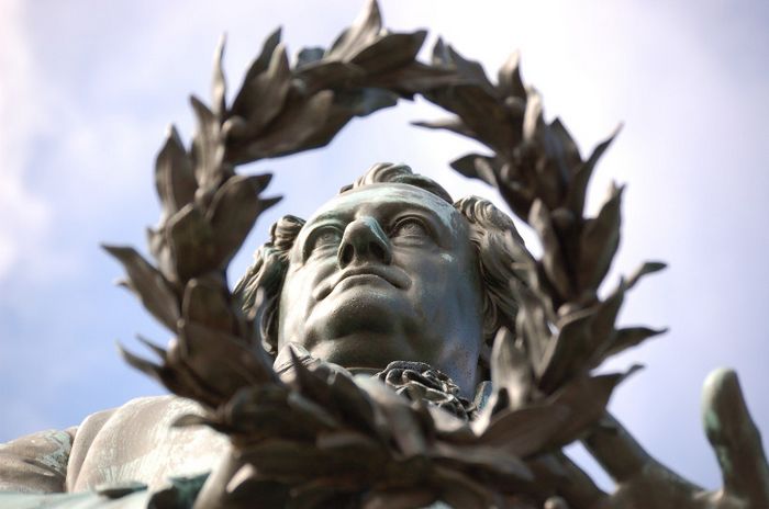 In Weimar Goethe durch den Kranz gesehen